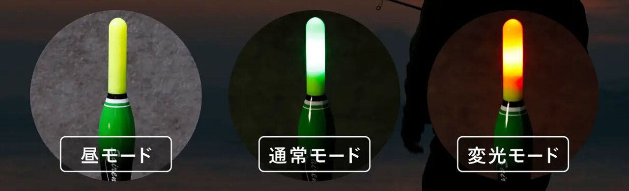 Depending on the fishing spot's conditions, three modes can be used interchangeably. In calm waters, the variable light mode is effective, while in environments with wind or waves, switching to the normal mode allows for stable use while minimizing malfunction. It's also practical that switching modes can be easily achieved just by changing the orientation of the battery.