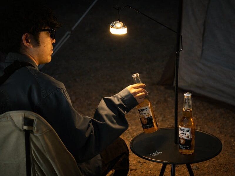 From coffee time at the campsite to cozy reading time at home. The quality of adult relaxation time is influenced by the presence of a side table for drinks and small items. DOD's new product "Sugoiss Table" is a clever piece that performs seamlessly both indoors and outdoors. It features a height adjustment function to match chair height and a function to illuminate your workspace, making it a high-spec side table.