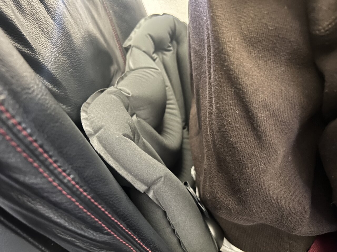The 3D three-dimensional fit structure supports the natural curve of the lower back, and the moment I sat down, I couldn't help but exclaim, "Oh... this is comfortable!" It's common for airplane seats to cause your rear end to slide forward and your lower back to round when sitting for long periods, so having a cushion that stabilizes the pelvis makes it easy, and I was able to relax without having to readjust until arrival.