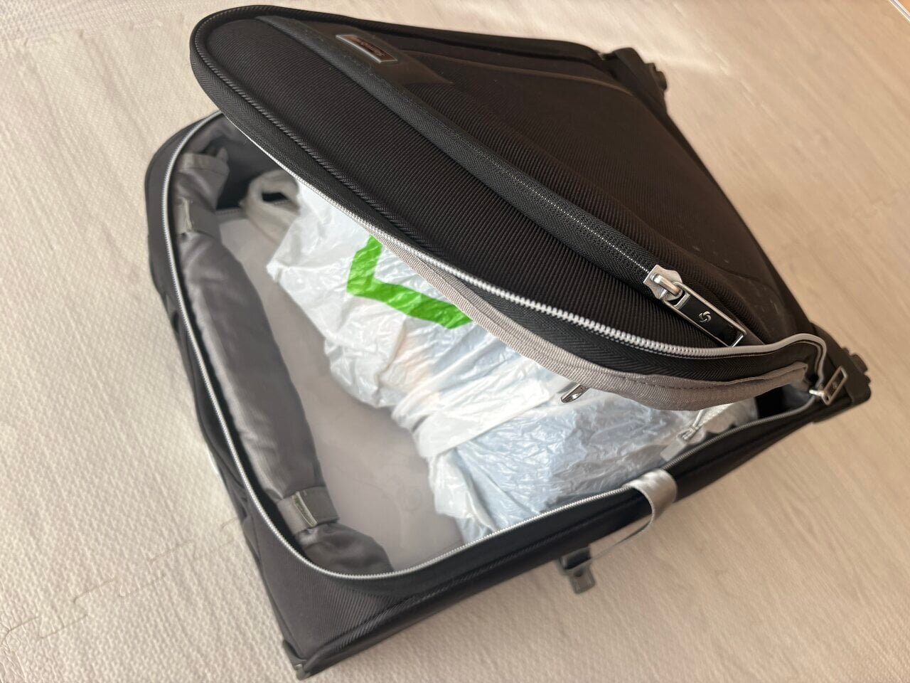 What I always face during business trips and travel is the problem of returning with more luggage, making it difficult to close my suitcase. Until now, I have been putting pajamas and the clothes for the next day into supermarket plastic bags and somehow cramming them into my suitcase.
