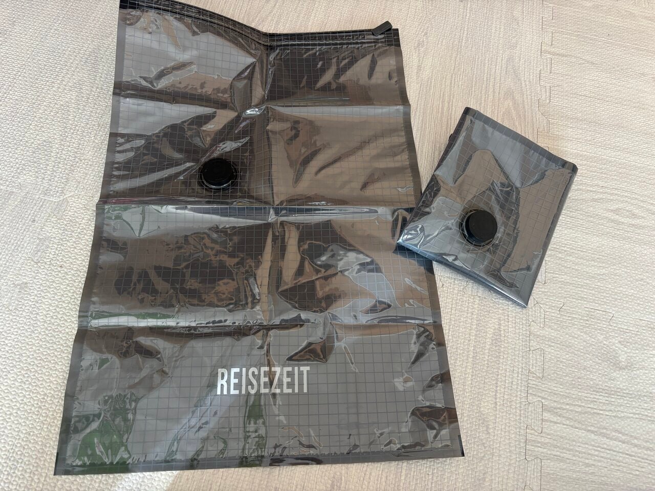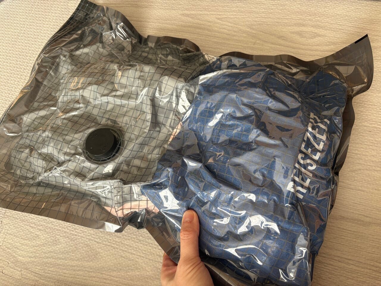 To make organizing luggage easier, I got the USB rechargeable automatic vacuum pump from 3COINS. It's simple to operate; just hold the button for about 2 seconds to start the suction, and the clothes are compressed firmly. When I tested it this time, compressing pajamas, a T-shirt, and one set of underwear took about 10 seconds. You can hear the suction noise, but it’s not too loud and was particularly not bothersome.