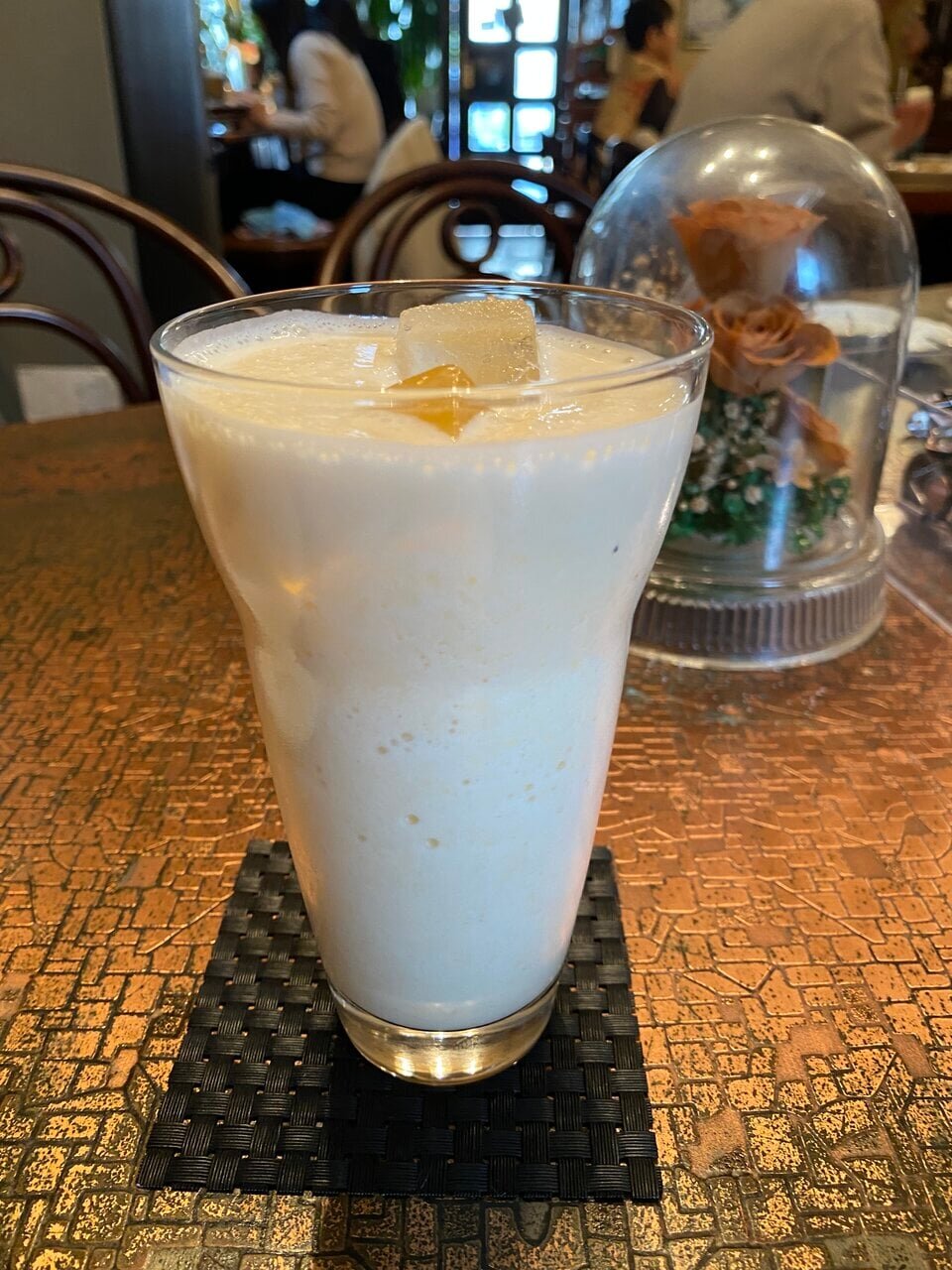 The flavors of banana and peach spread gently, a delightful taste. This is something that makes children want to order it first upon entering. To be honest, I was already full after having the morning service, but I couldn't help but gulp it down.