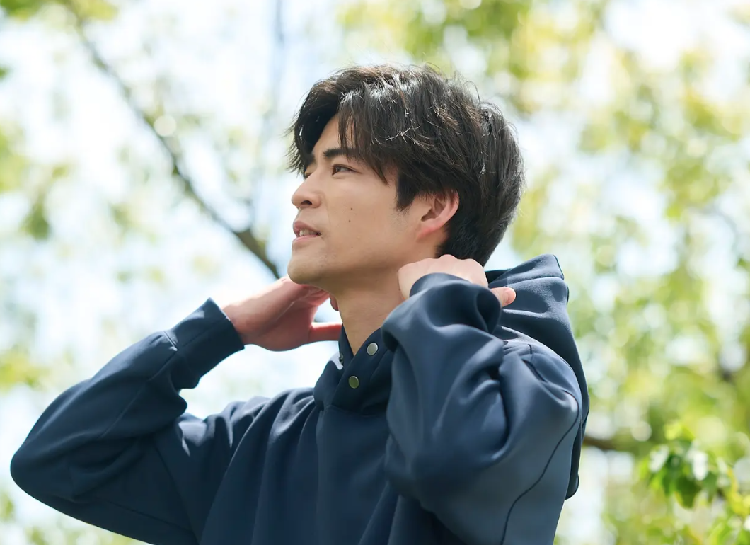 When you let the air out, it returns to a silhouette just like a regular hoodie. Its smart design allows it to be worn not only during travel but also as everyday wear. Additionally, it features a cool-touch fabric, UV protection, and stretchability, making it comfortable not only during long travels but also at your destination.