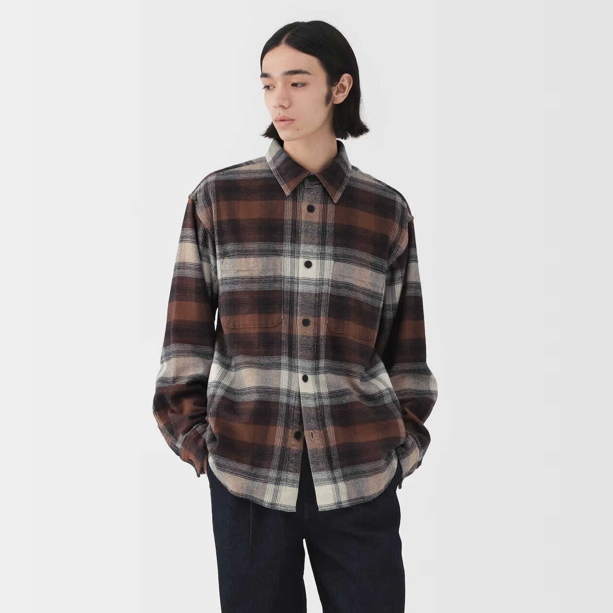 アウターにもなる「両面起毛フランネルシャツジャケット」
