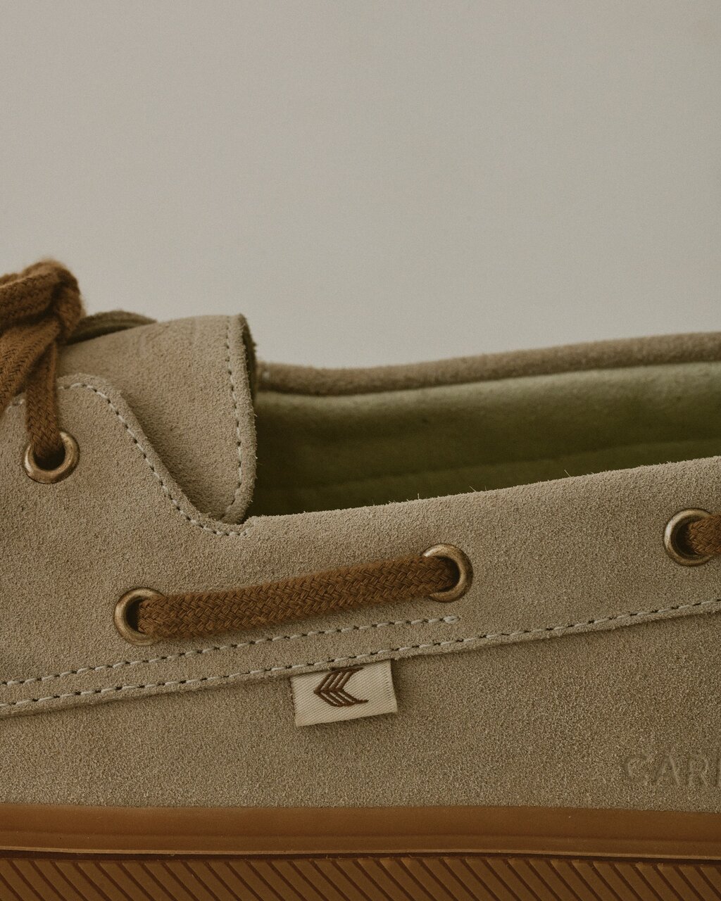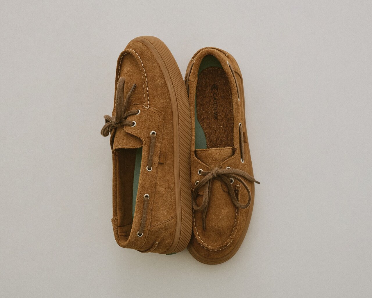 別注のベースとなったのは、CARIUMAの日本未発売モデル「MARE BOAT(マレ ボート)」。通常モデルでは使用していないスエードを採用し、温かみと上品さを兼ね備えたこれからの季節にピッタリな仕様に。アウトソールをガムソールに変更し、ストリートを感じさせるクラシックでスタイリッシュな印象にアップデートしています。