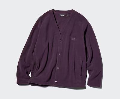 無地とストライプの2パターンで展開される「フリースオーバーサイズカーディガン」は、ニードルズのアイコン的な形をユニクロのフィット感に合わせて調整したデザイン。ふくらみのある暖かなフリース素材を使用し、胸元にはニードルズのアイコンであるパピヨンロゴを刺繍。上質感を添える貝調ボタンで、シルエットはゆったりとしたオーバーサイズ。ちょっと肌寒いときにあると助かるカーディガンです。