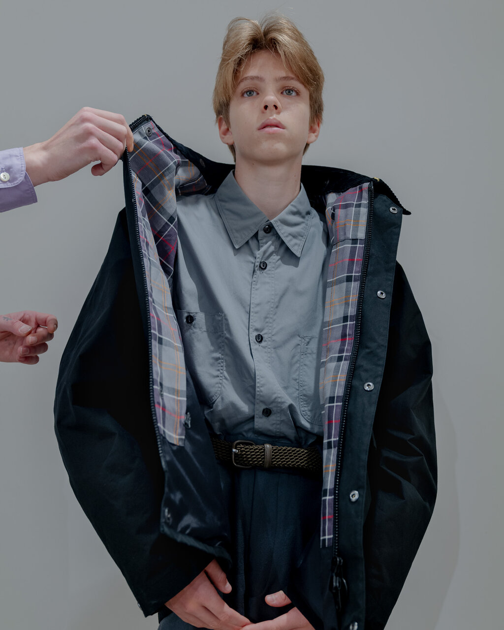 こちらはバブアーで定番の「トランスポート」をアレンジしたもので、同様にブランドらしさを活かしながら現代のトレンドを表現した一着です。