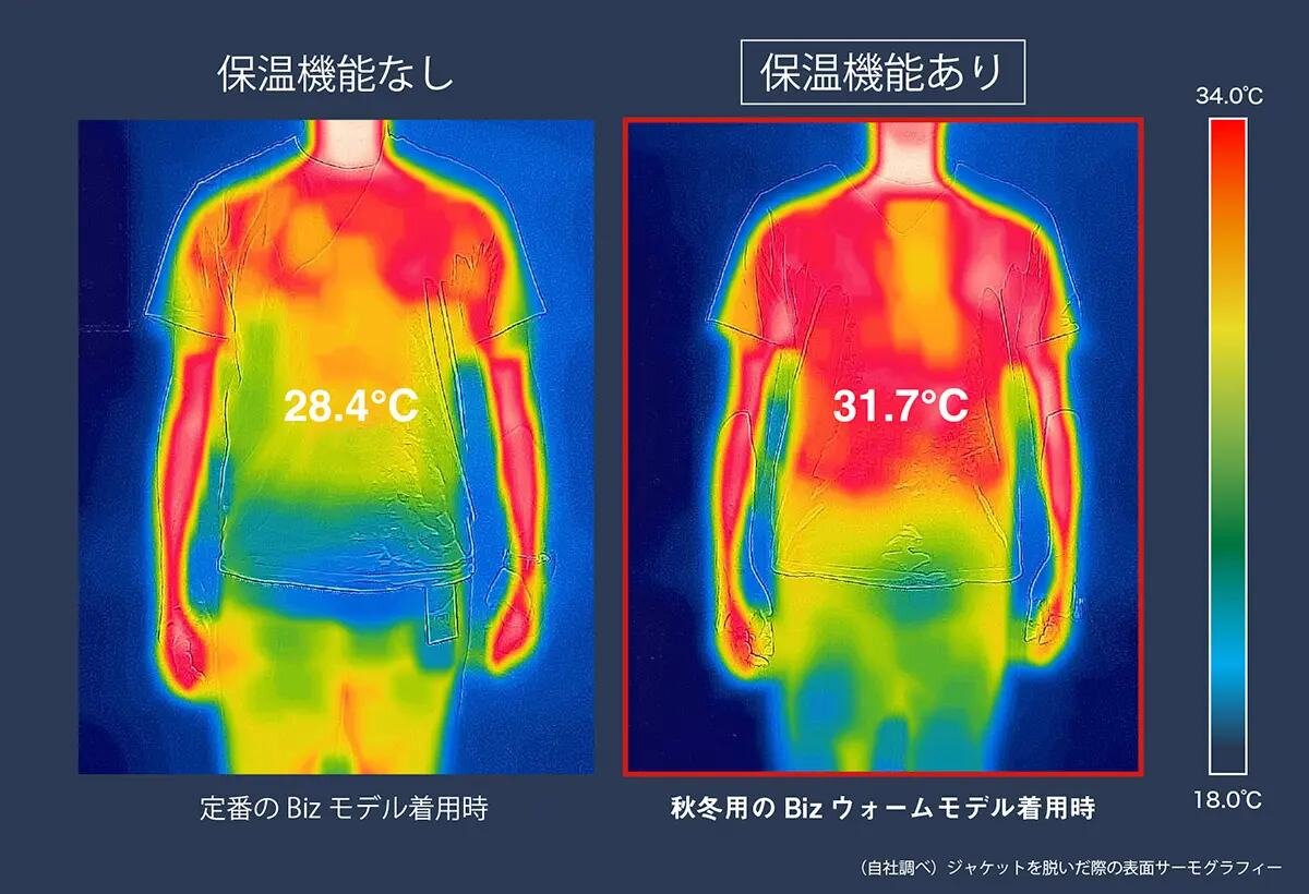 急な寒さに対応すべくスーツの中に薄手のダウンを着込んでみたものの、あれちょっと着膨れしている……? それならもう“スーツ自体”が暖かければいいのでは。ということで、保温性と軽量性に優れた冬用スーツ「Bizウォームモデル」をリコメンド。