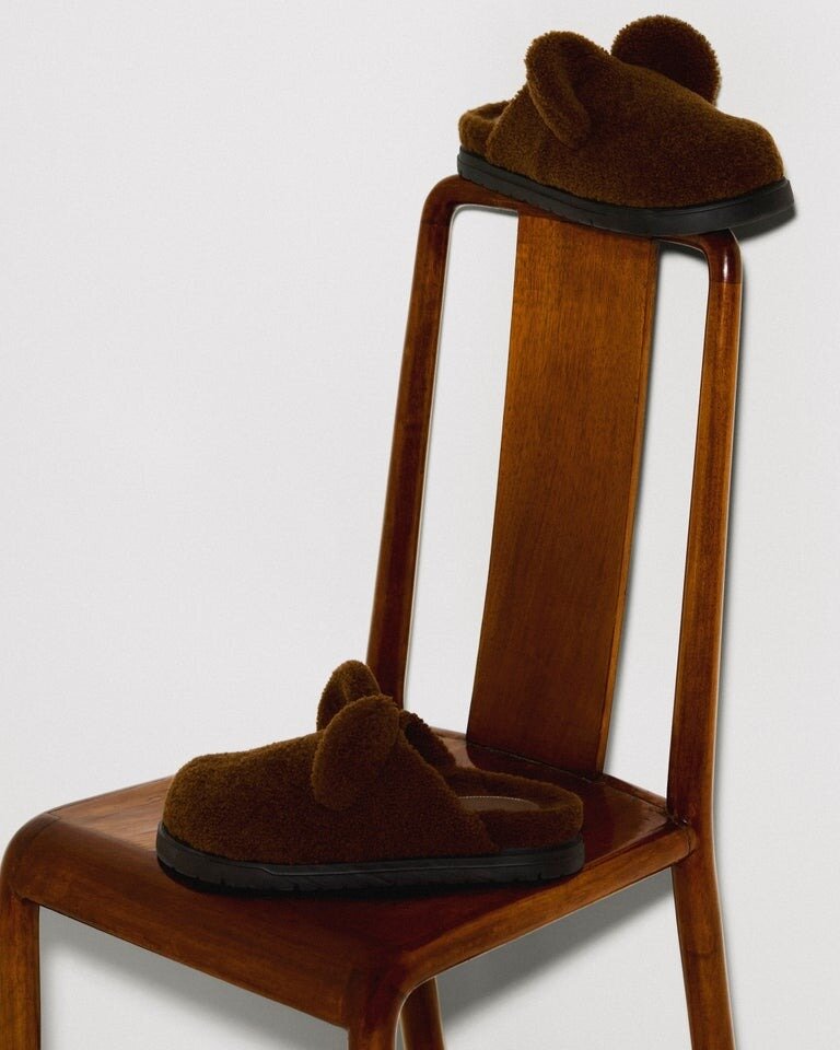 愛らしいテディイヤーをモチーフにした、キャップやサンダルも見逃せません。特に「サボ ブラウン シアリング サンダル」は足元に温もりをプラスしながら、遊び心あふれる個性的なスタイルを演出してくれます。