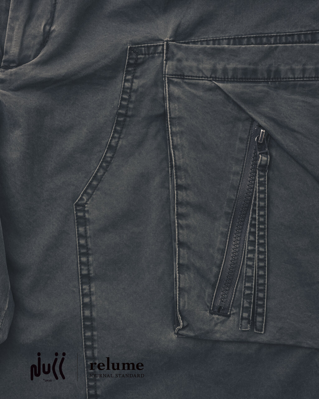 NULL TOKYO×JOURNAL STANDARD relumeの別注パンツは、デザイン性とタフネス、可変性を兼ね備えたユニークなパンツ。自然なフェード感が身体に馴染み、冬のカジュアルファッションを豊かにしてくれそうです。サイドジップで自在にチェンジできるシルエットは、コーデの幅をぐっと広げてくれるでしょう。