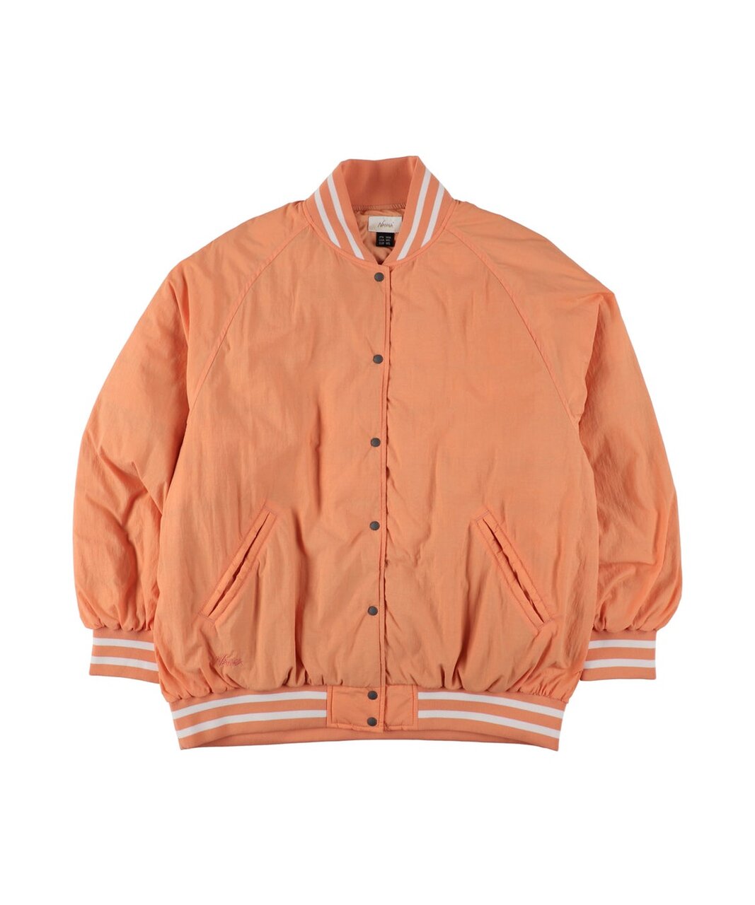 「SOFT DOWN VARSITY BLOUSON」は、スタジアムジャンパー型のダウンジャケット。ワッシャー加工を施した撥水ナイロンで機能性もありつつ、軽い着心地でちょっと寒い季節にぴったりです。胸ポケットと腰ポケットにファスナーが採用され、鍵やスマホなどがポケットから落下しない仕様になっています。身体を動かして温まりたい場面でも、気楽に動くことができそうです。