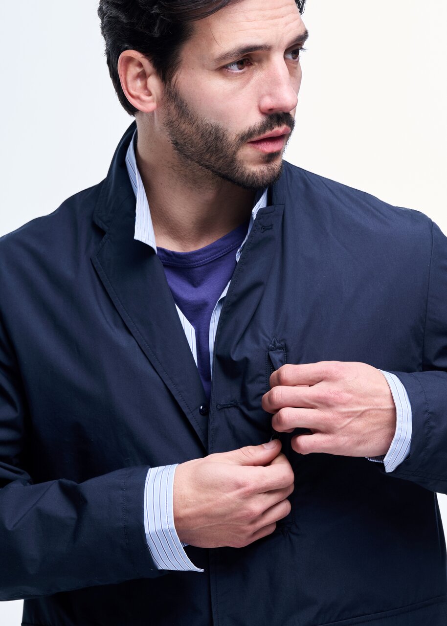 ポリエステルとコットンを65%:35%の割合で混紡して織り上げられた「65/35ベイヘッドクロス」を使用した、バークレージャケット。