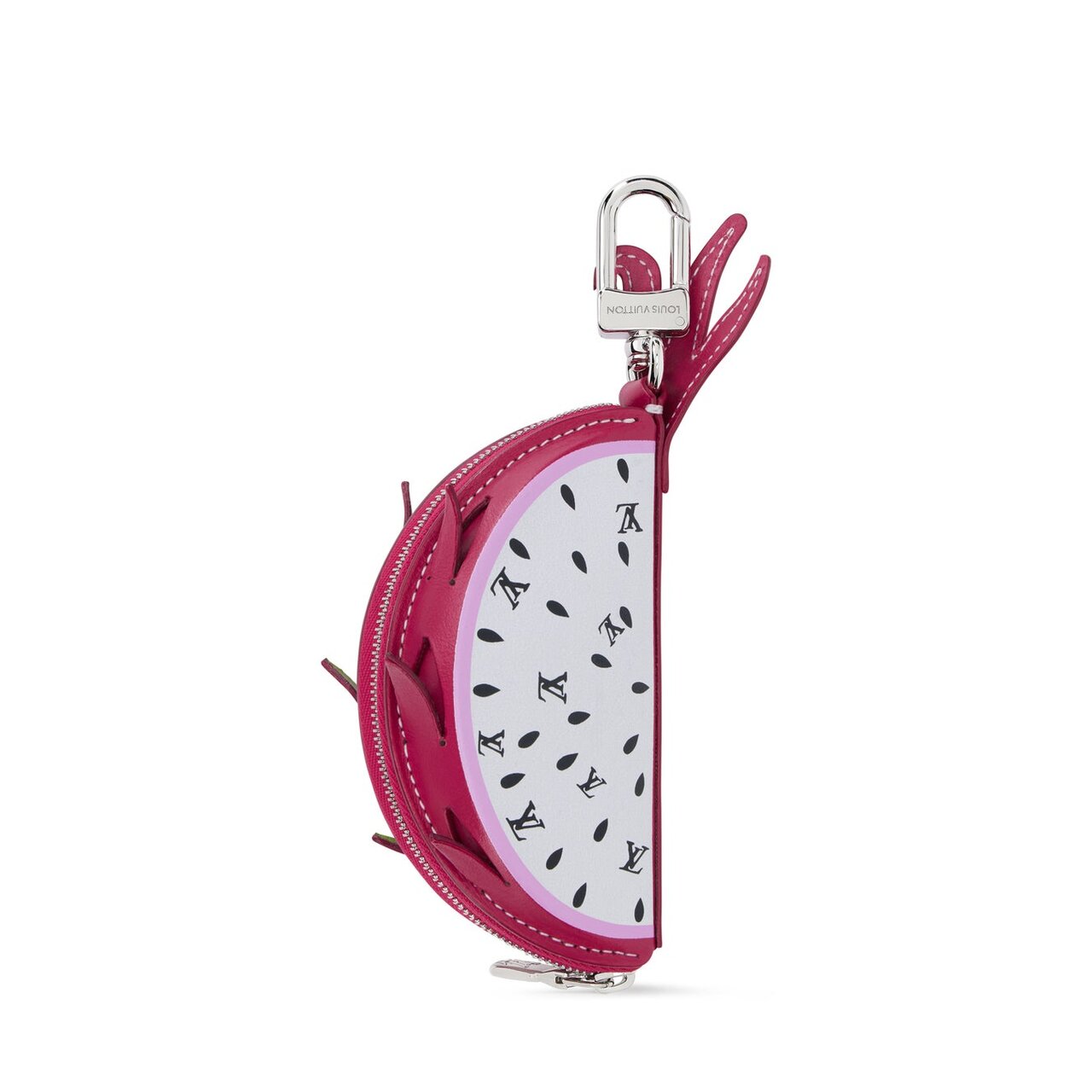 トロピカルな彩りが際立つ「バッグチャーム・LV ドラゴンフルーツ」は、ポーチとしても活用できるレザー製チャーム。鮮やかなピンクの果皮にLV ロゴをさりげなく散りばめ、フレッシュな南国の果実を表現しています。