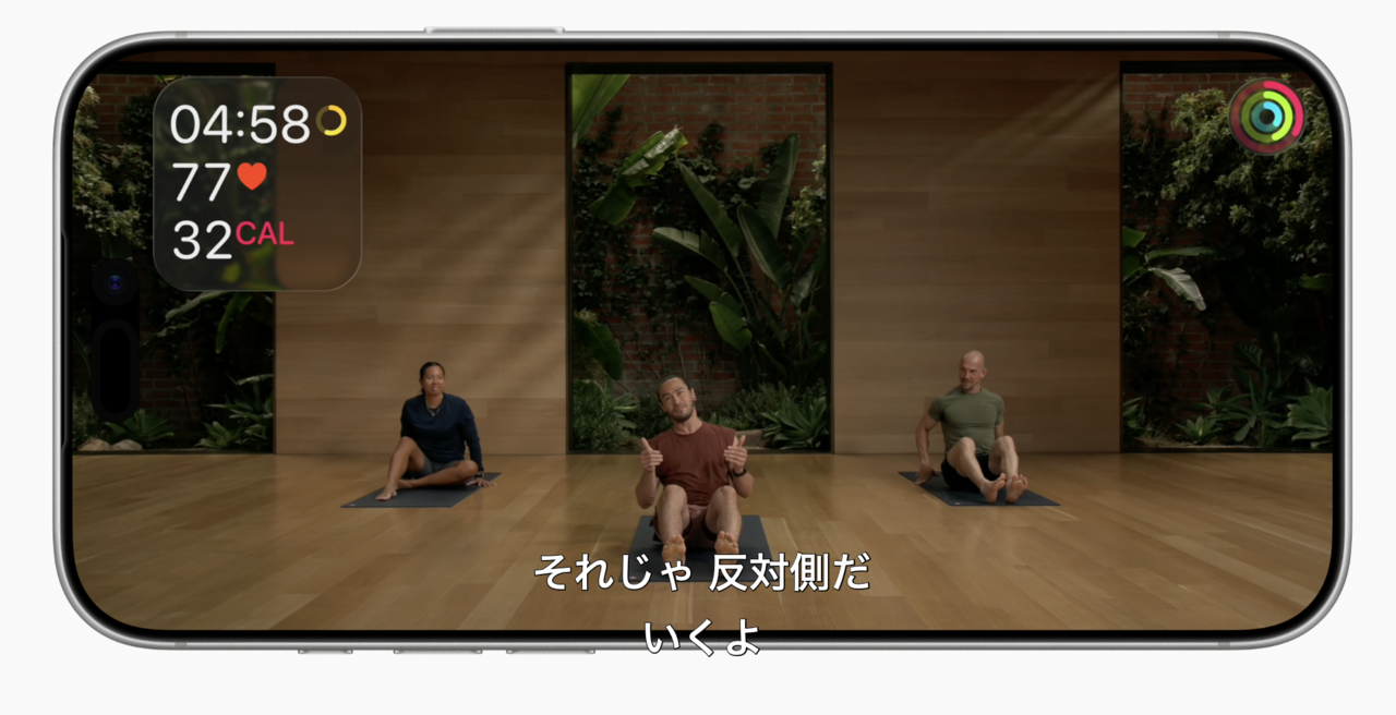 今回はサービス開始以来、最大規模のアップデートとなり、日本語だけでなくスペイン語とドイツ語のデジタル翻訳音声での提供も実施。28名いるFitness+トレーナーの実際の声に基づいた生成音声を利用し、ワークアウトとメディテーションには字幕も含まれるとのこと。