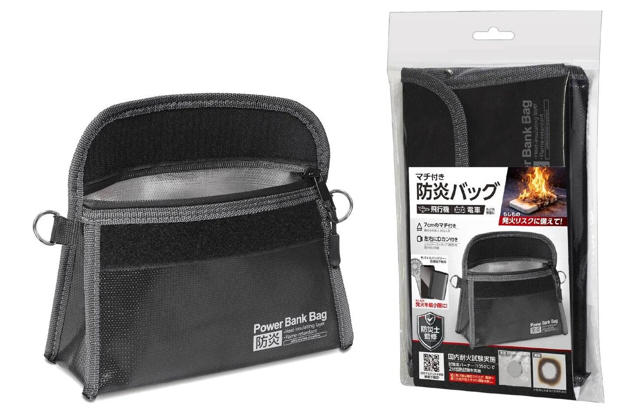 年々増加するモバイルバッテリーの発火事故。消防庁も注意喚起を強めるなか、飛行機や電車の中での発火は大事故につながる恐れも。そんなもしもに備えて使いたいのが専用収納ケース「マチ付き防炎バッグ」と「防災ポーチ」です。