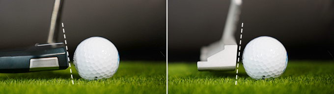 パットの精度を下げる原因はボールが押し出された直後の無回転部分にあることに注目。ロフト角をマイナスにすることにこだわった結果、無回転部分を無くすことに成功しています。