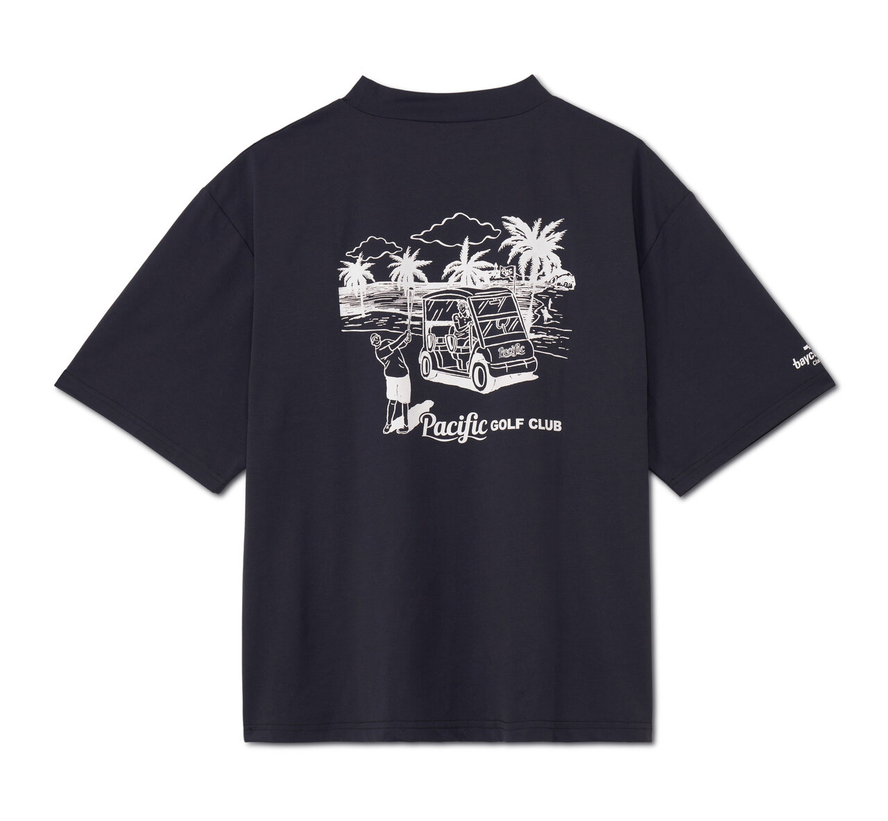 バックプリントのイラストレーションは数々のメディアやファッションブランドとコラボレーションし、アートを発信しつづけているFACE氏の描き下ろし。胸にはPacific GOLF CLUBのブランドロゴをプリント。裾にはPGCオリジナルピスネームを配置し、細部にもこだわりのあるデザインに。