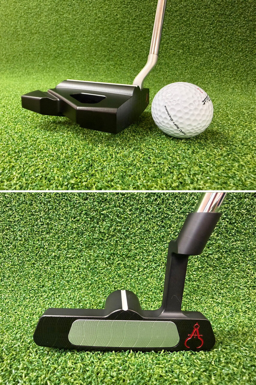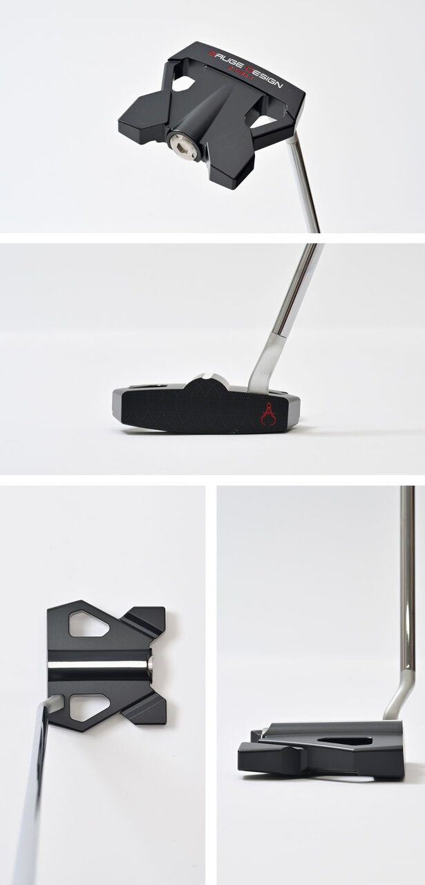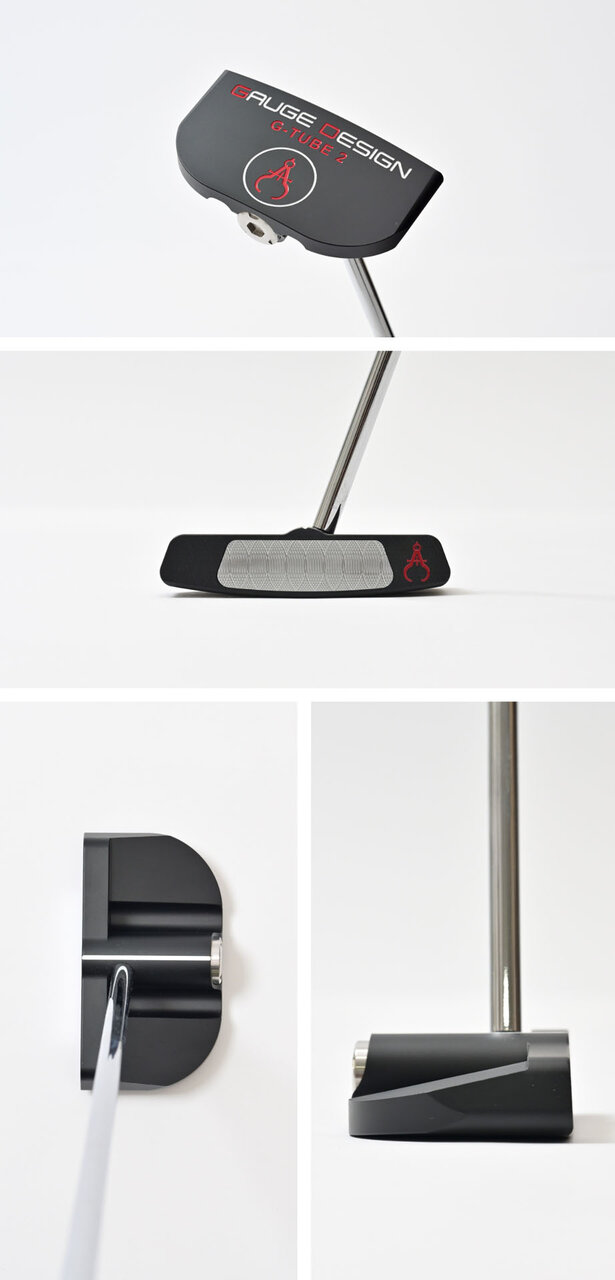 シリーズ最大の特徴といえるのが、フェースセンターに搭載された円筒形状の「G-TUBEデザイン」。浅めヘッドはアルミフェースでやわらかく、深めヘッドはSUS304でソリッドな打音と手応えを両立しています。インパクト時にボールが均等に押し出されるため、打点が上下にずれてもエネルギー伝達が一定になり、常にスムースで直進性の高い転がりを実現してくれます。