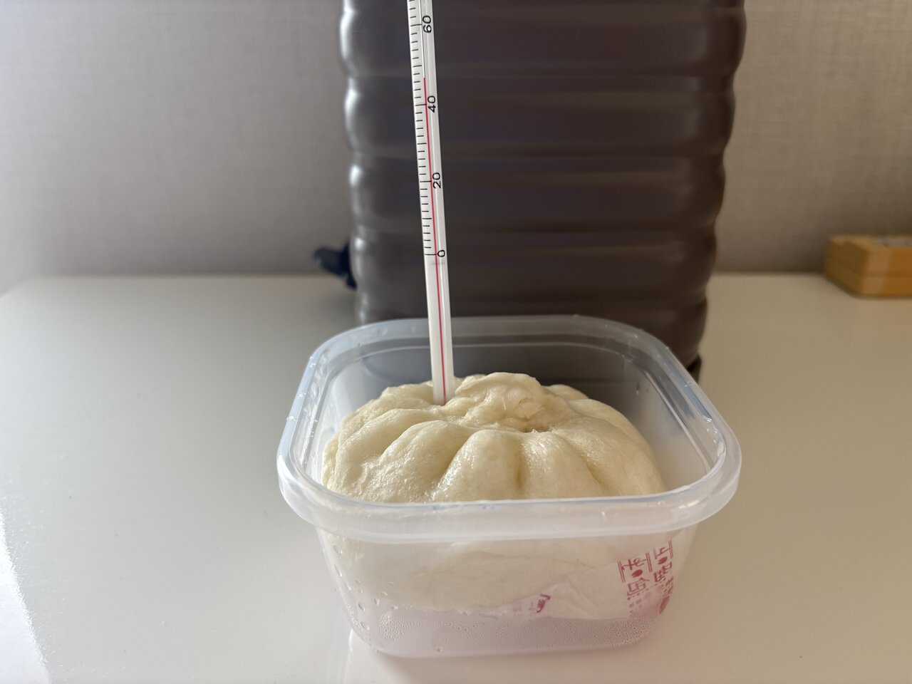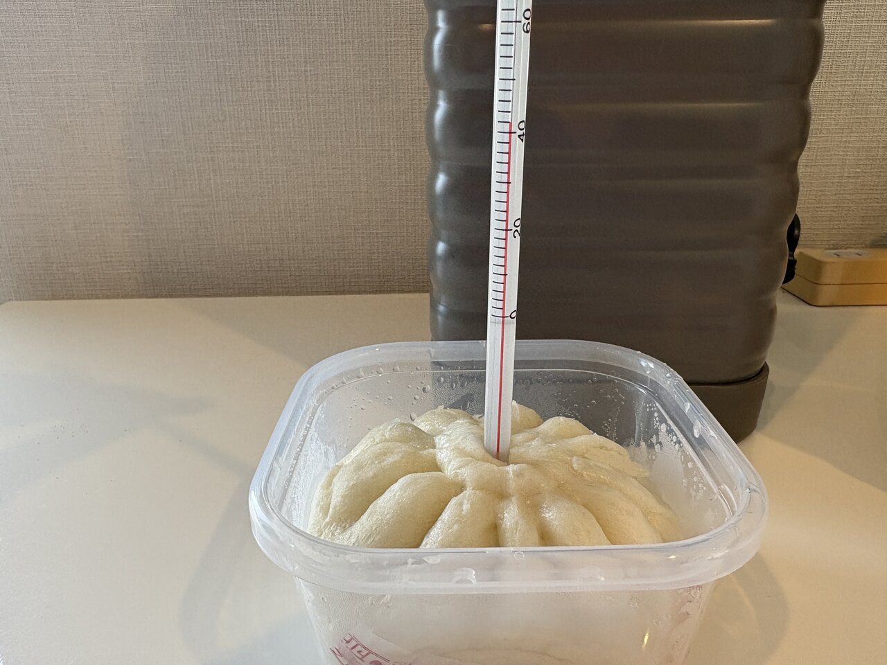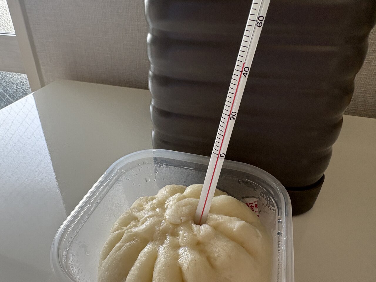 90分後:42℃ 湯気は弱まったけどまだ温かい