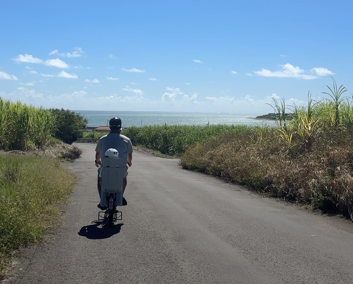 印象的だったのは「シュガーロード」と呼ばれる一本道。NHKドラマ「ちゅらさん」に何度も登場した道で、サトウキビ畑と牧草地の間を真っ直ぐに伸びる景観は、まるで映画かテレビ画面の中にいるようでした