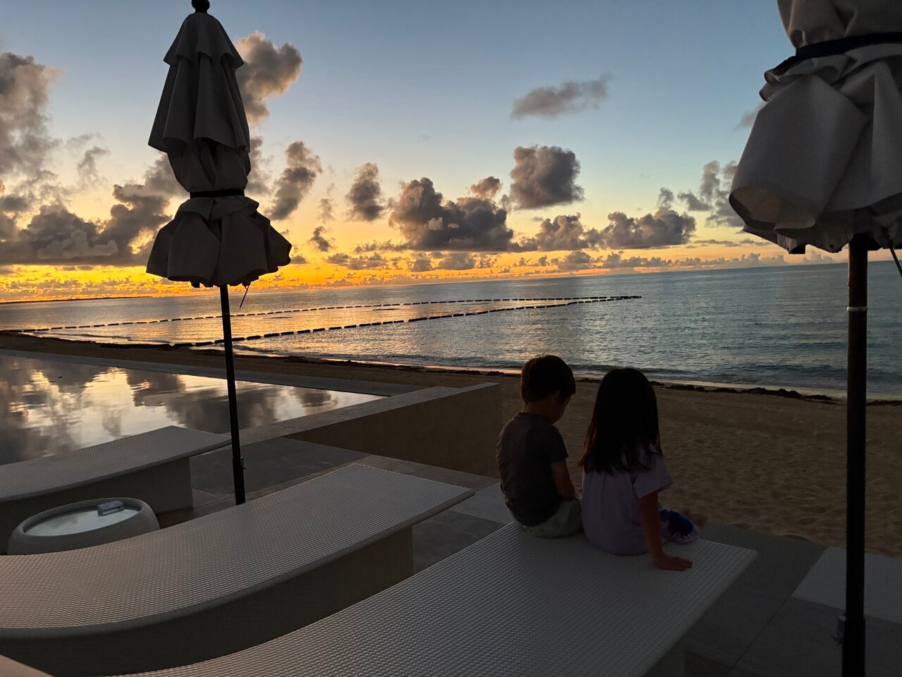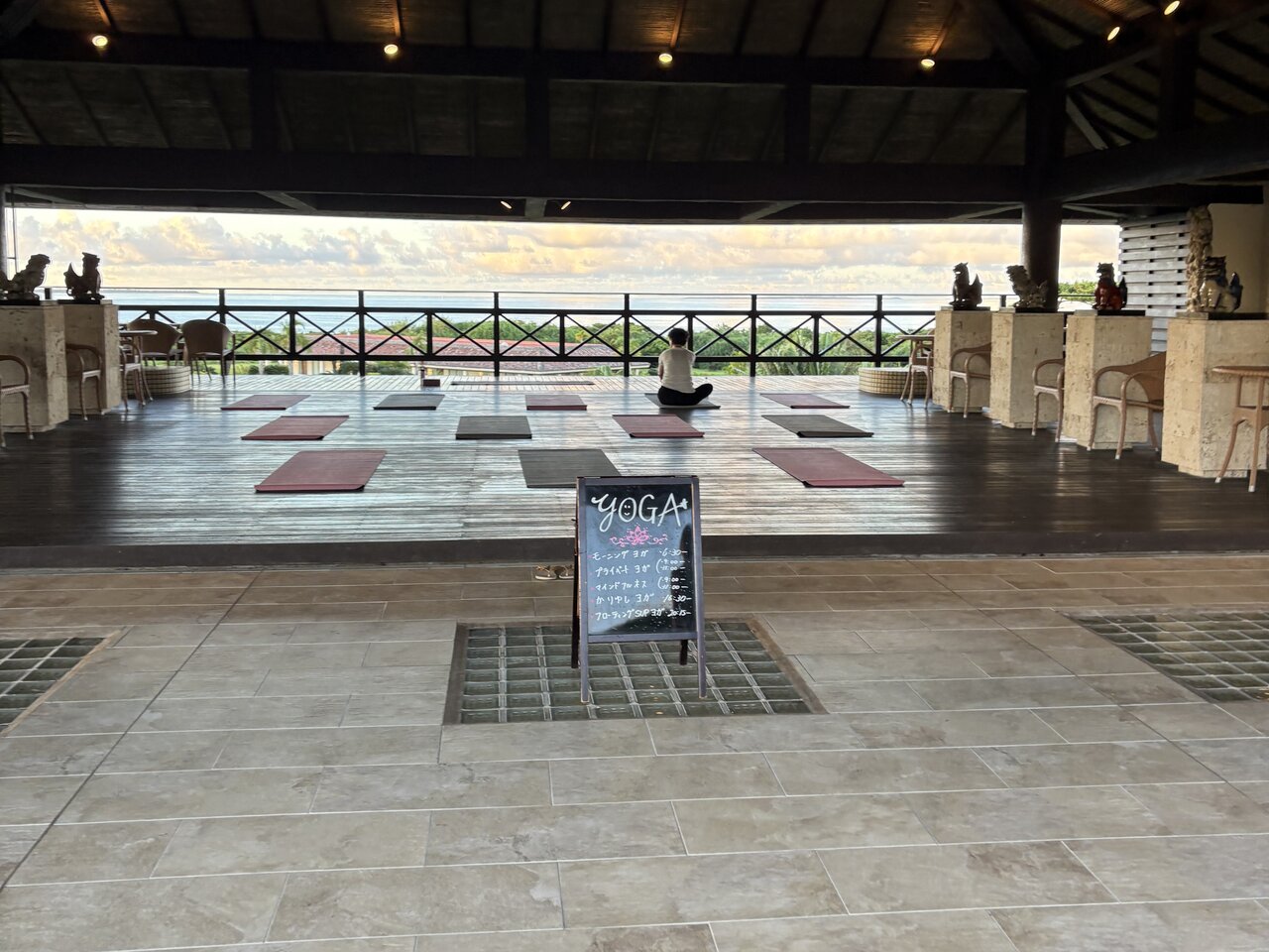 朝は無料のモーニングヨガに参加。子供たちは夫にお願いして、ひとりで臨みます。海風を感じながら体を伸ばすだけで心がリセットされ、体の奥から活力が湧いてくる感覚。自然と向き合うアクティビティが、非日常感をさらに深めてくれました。