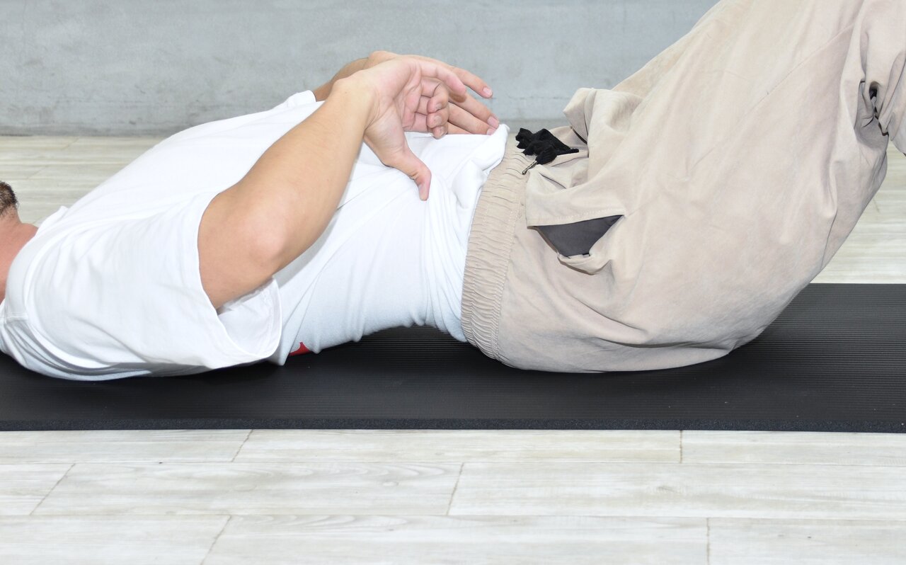 その際、腰は床から浮かないように気をつけましょう。