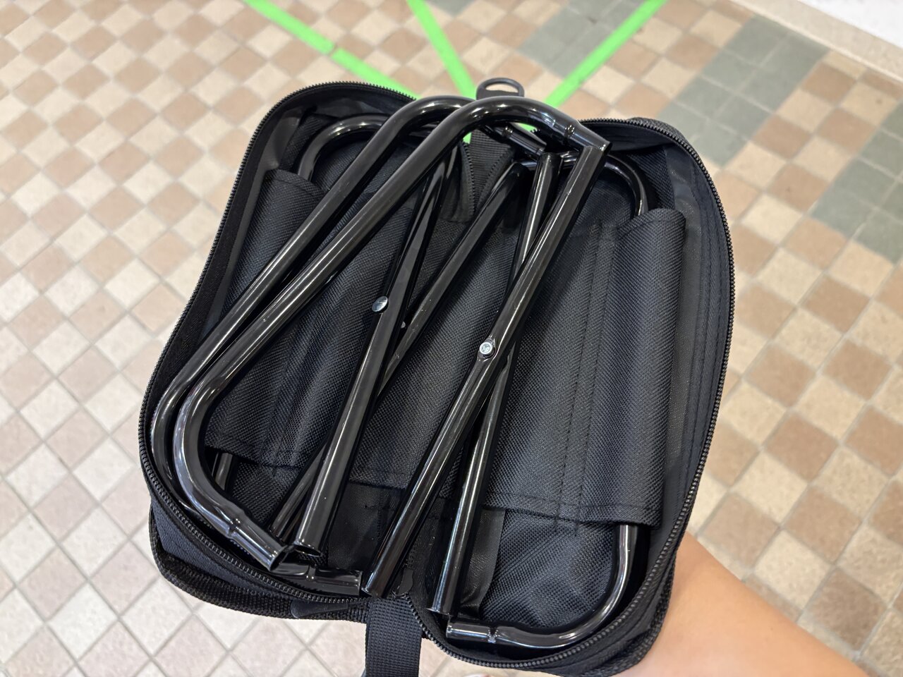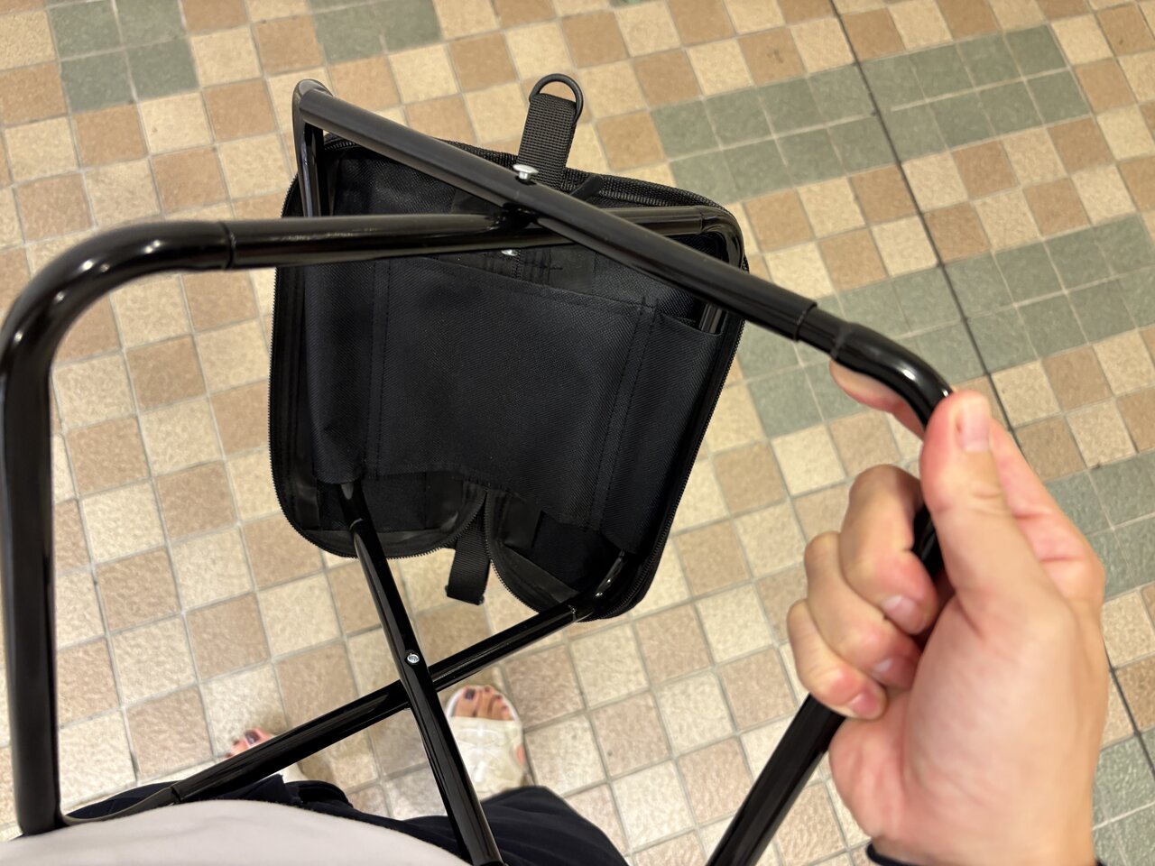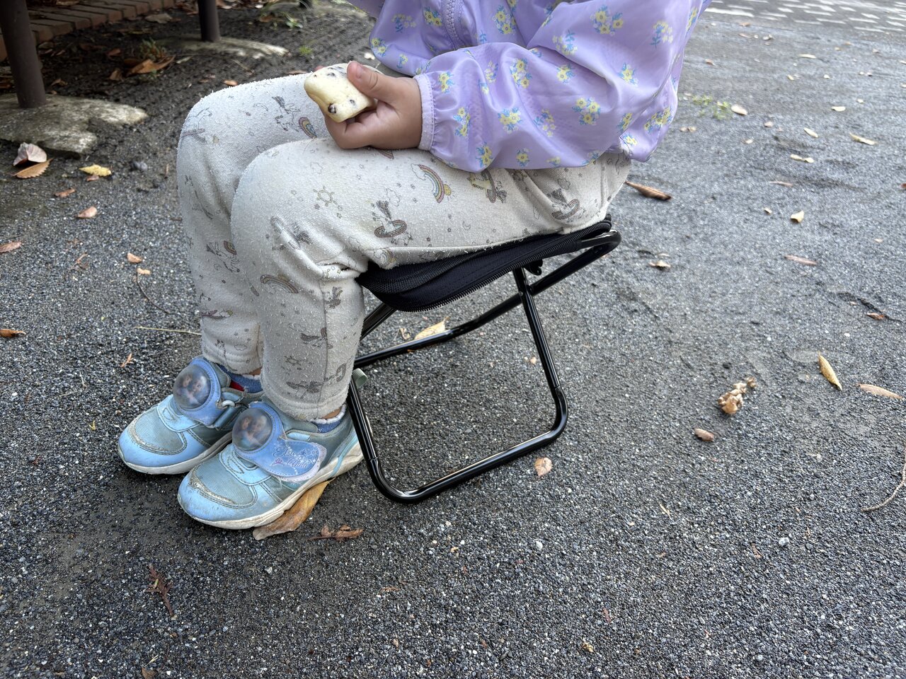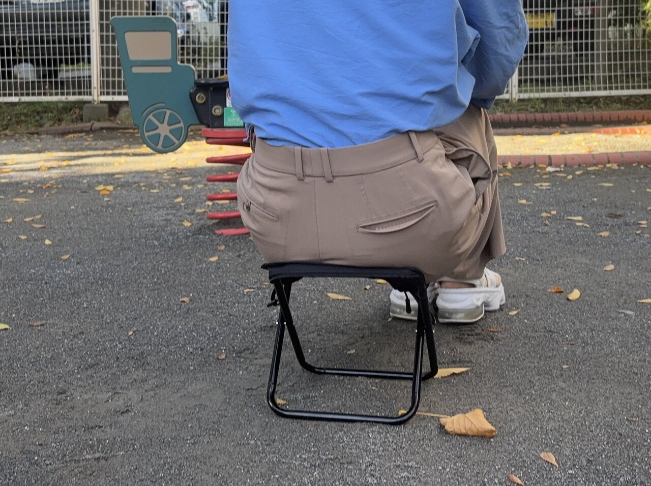 実際に使ってみると、行列の途中やちょっとした休憩のときに腰を下ろすだけで、体の負担がぐっと軽くなります。荷物の整理をしたり、スマートフォンを見たり、子供と話したりと、待ち時間を落ち着いて過ごせるようになりました。