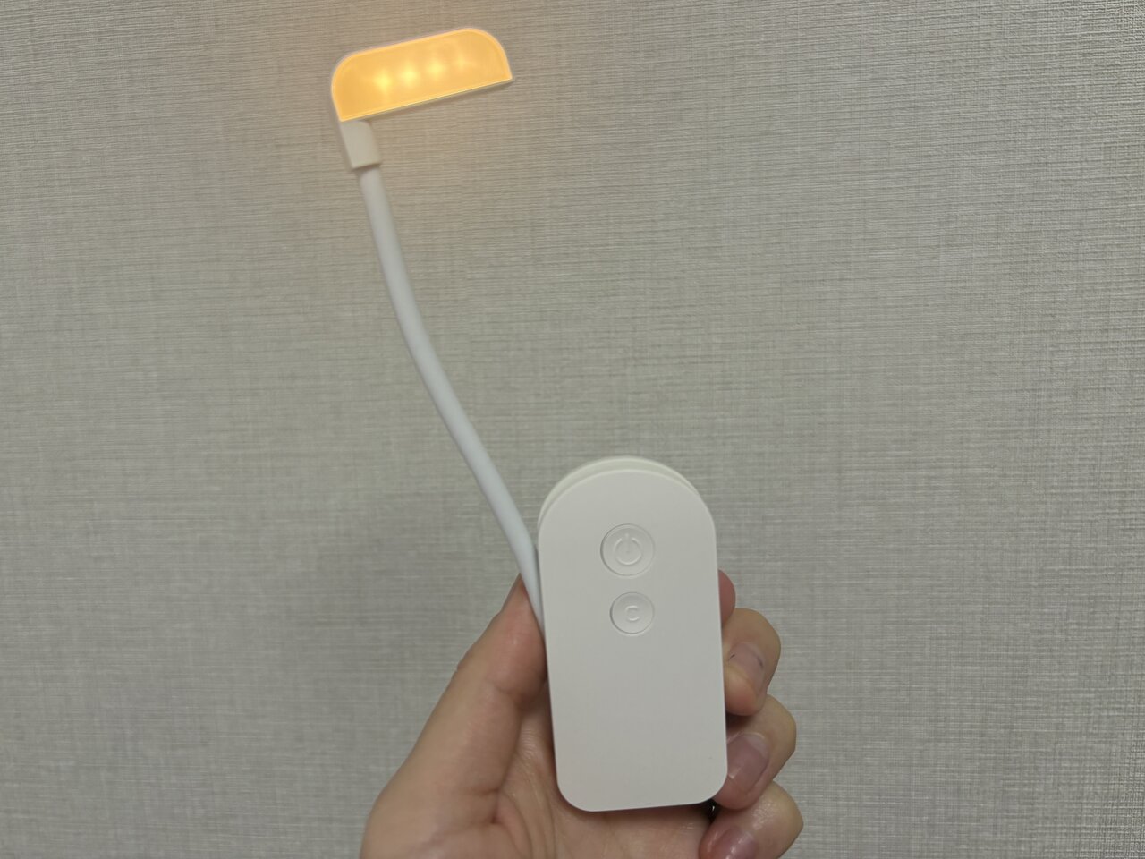 このブックライトは、本に挟んだ状態でも負担感がなく、読書中に存在を意識する場面もほとんどありませんでした。ライトを支えるために姿勢を意識する必要がなく、読み疲れしにくい点は寝室で使いやすい。