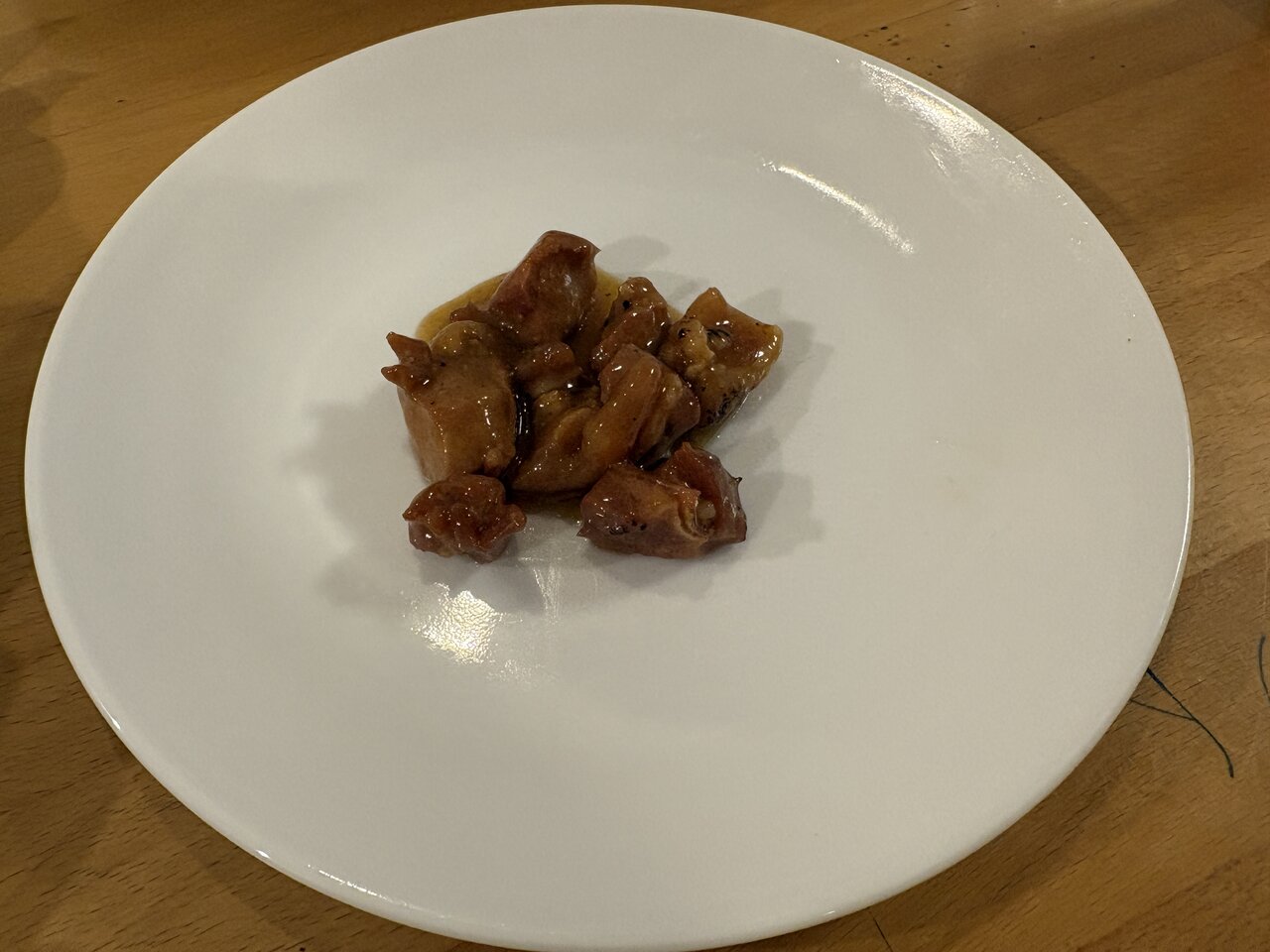 皿に移してもだいぶ男らしい。これを独り占めして食べるもよし、みんなで爪楊枝でつつくも良し。黒い皿は合わないかと思いきや、意外と華やかにも見えます。