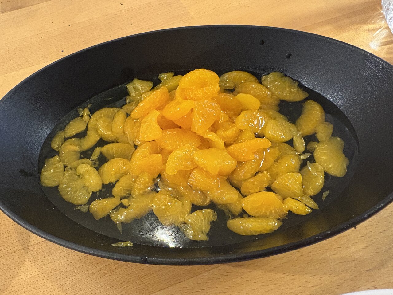 一応、白い皿にも盛ってみました。あえてシロップも全投入、最後は皿ごと持って飲み干します。口だけが空いている缶詰よりは、やはり盛るだけで印象が変わることが分かりました。