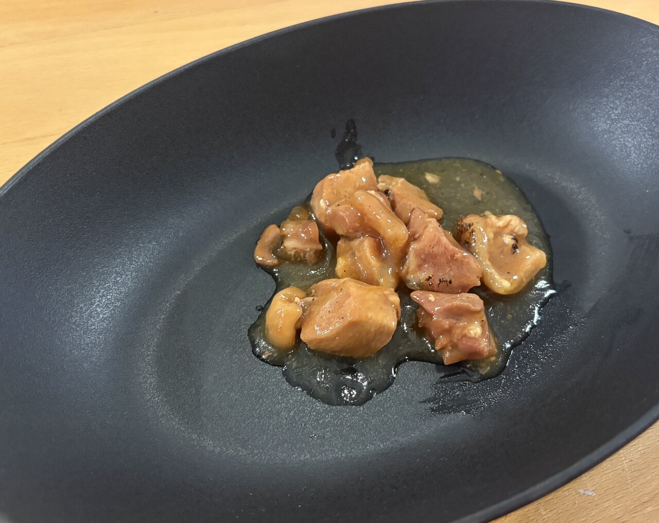 タレや油分が広がると皿の黒に溶け込むように見え、やや重たい印象になる場面もありました。見え方の変化が大きい分、好みが分かれる部分になりそうです。