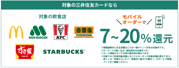 三井住友カードは9月16日、対象飲食店でのモバイルオーダー決済で7~20%のVポイント還元を開始。人気チェーンの対象が拡大しました。