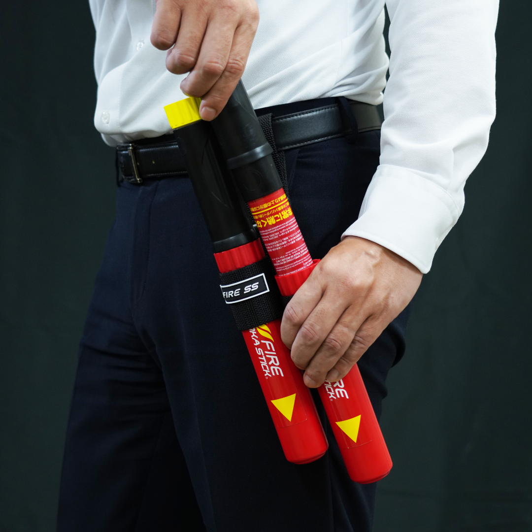 2024年に日本に上陸した「ファイヤーショーカスティック(FSS)」は、片手で使える次世代の消火器具。今回、新たなオプションとして携帯用ホルダーとハンディホルダーがお目見え。使用時のハードルがさらに下がりそう。