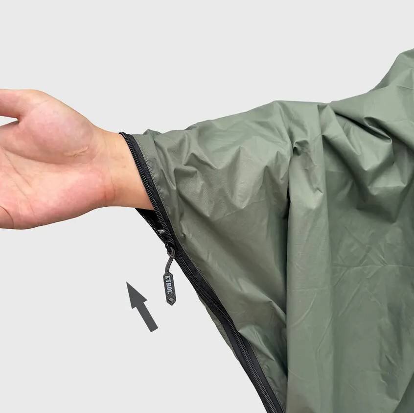 サイズ/平置き時:約145×200cm 収納時:約8×8×20cm レインポンチョ:約100×145cm スリーピングバッグ:約72.5×200cm
