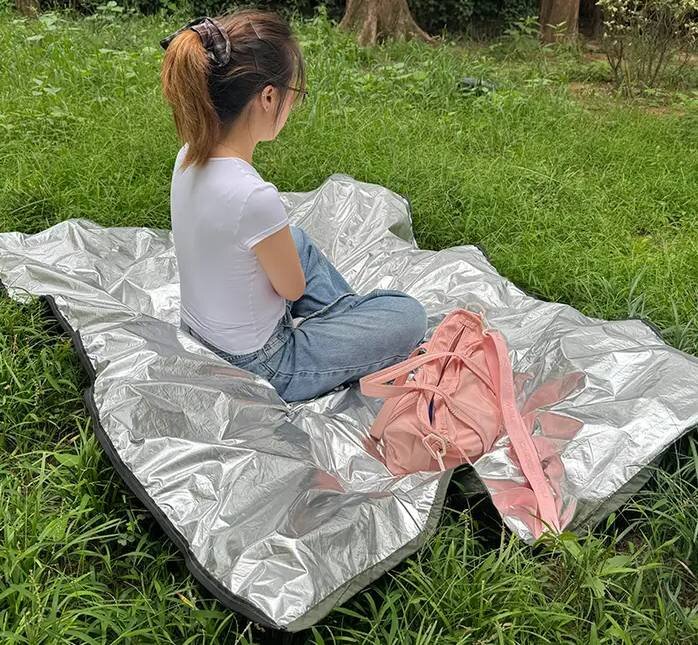 広げればこのとおりレジャーシートに。ピクニックや、ドライブ中のちょっとした休憩でも役立ちます。