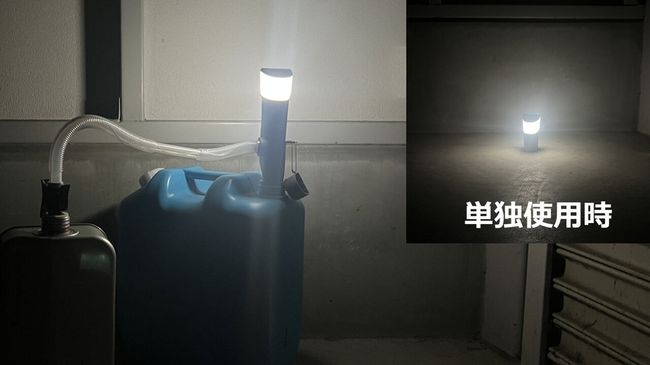 LEDライトつきで、夜間給油にも便利。灯油ポンプとライトが一体化していると、防災グッズとしても活用できます。明るさは3段階調整が可能です。ちなみに捨て方に迷うバッテリーは、「JBRC協力店・協力自治体」でリサイクル可能だそう。冬が終わったあとのことも考えられた、エコな仕様です。