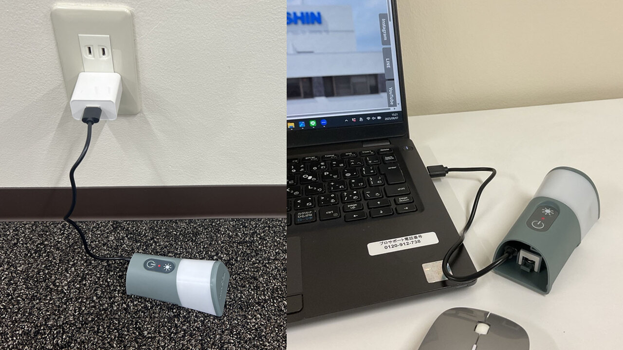 本体分離式だからどこでも充電可能。パソコンやモバイルバッテリーからも充電可能なUSB Type-C対応で、さまざまな電源からチャージできます。