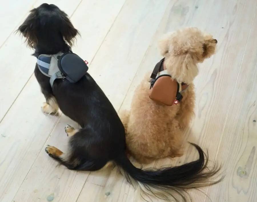 「ミニリュック付ハーネス」は、愛犬が背負うスタイルのハーネスです。小さなリュック部分には、おやつやエチケット袋など軽量のペット用品を入れられます。