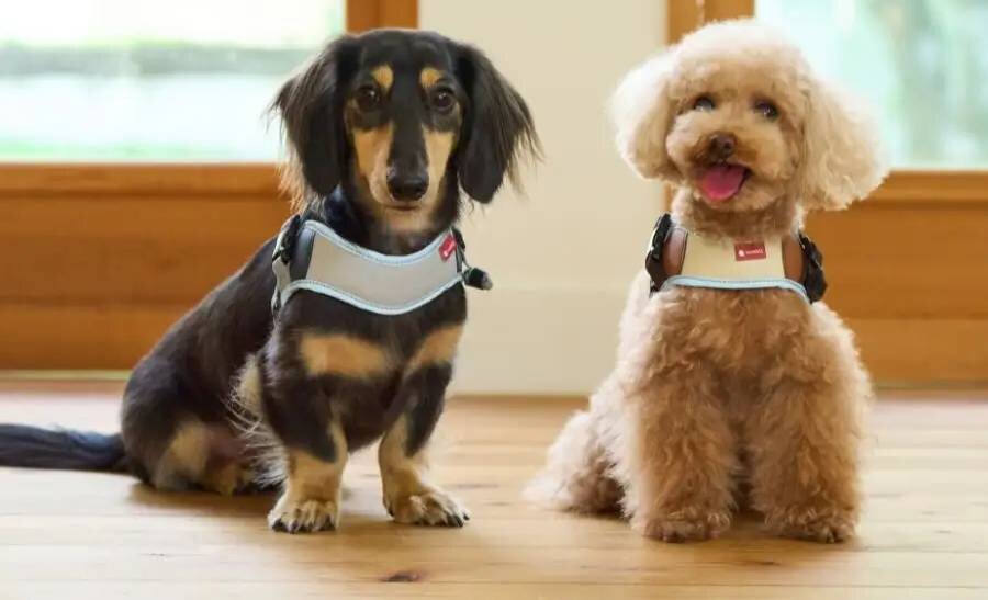 サイズ調整幅が広く、SとSSの2サイズ展開で愛犬の体型に合わせやすい仕様。本体外周のリフレクターが夕暮れ時や夜間の安全性を高めてくれるので、仕事終わりの遅め散歩でも心強く感じられます。