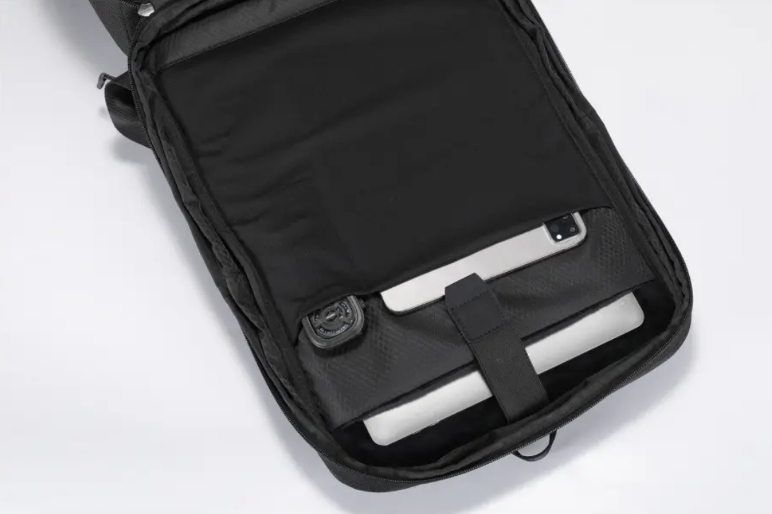 ショルダーストラップや背面の隠しポケットなど、計13個のポケットを搭載。ノートパソコンやタブレット、モバイルバッテリーから小物まで用途ごとにすっきり収納できます。