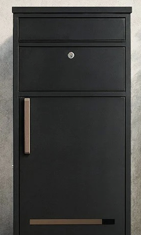 135Lサイズで、取っ手がついた機能的な一台。ポスト一体型なので、宅配の荷物だけでなく郵便物も受け取ることが可能です。