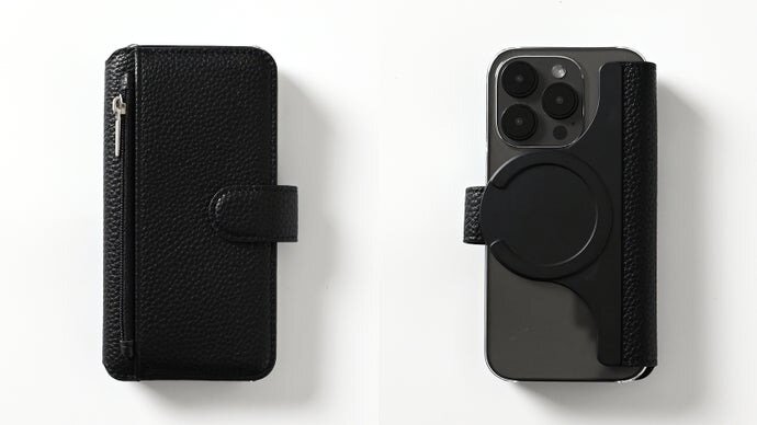 素材/手帳型ケース 合成皮革、MagSafe対応スチールリング スチール、クリアケース ポリカーボネート