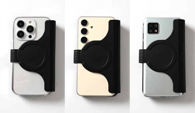 ワンタッチでスマートに装着可能。MagSafe対応スチールリング付きなので、どんなスマートフォンでも利用できます。ケースの上からでも装着できるため、愛用中のスマホケースをそのまま使うことも可能。カメラに干渉しないR形状デザイン設計になっていて、スムーズに撮影できるところもうれしいポイントです。