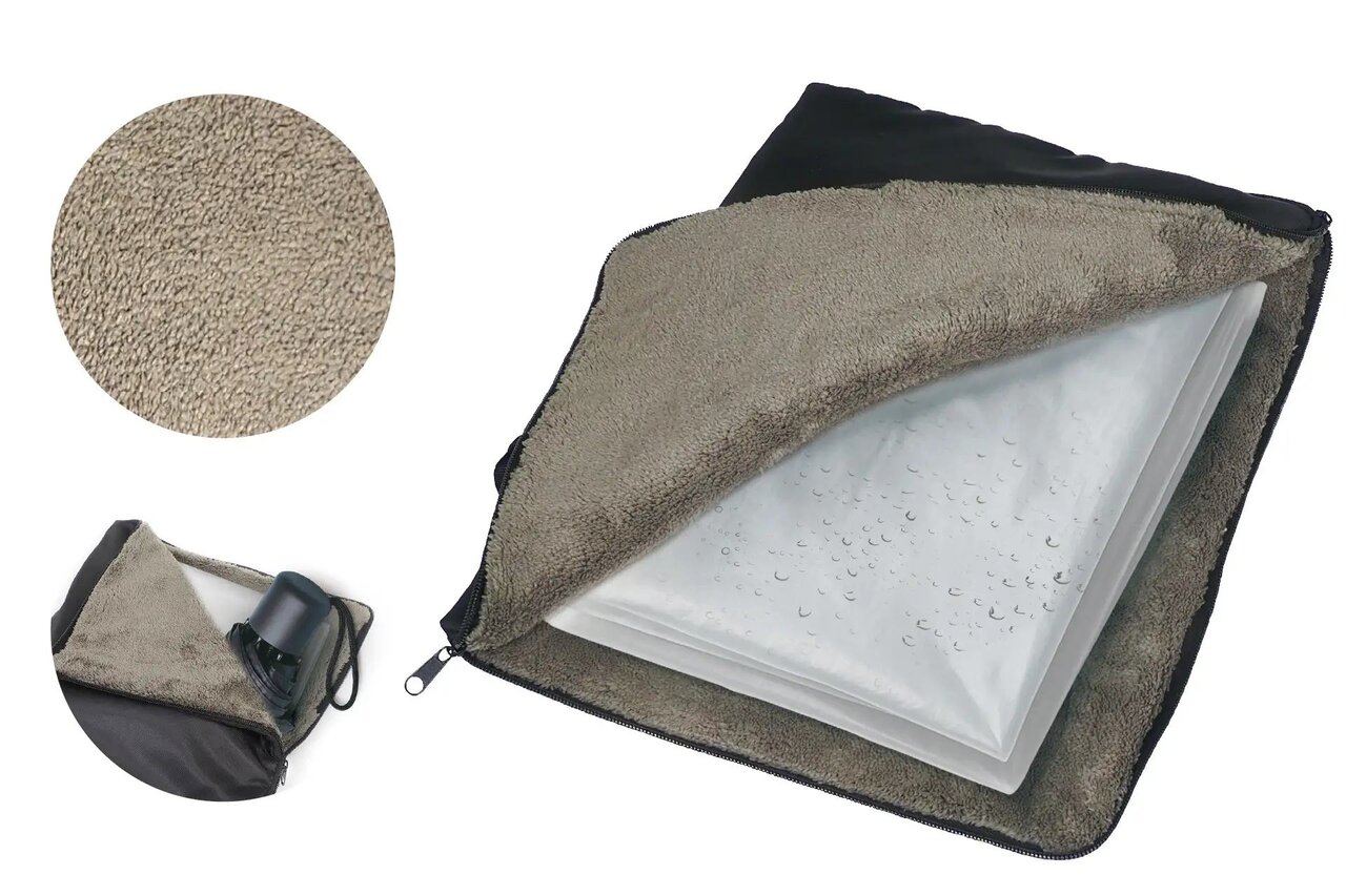 水気を切って入れるだけでOK。内側はマイクロファイバー素材で、濡れたアイテムの水分をしっかり吸収。使わない時はくるっとまとめてコンパクトに収納可能です。