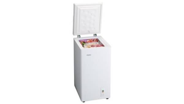 一方で、定格内容積は66Lと買い物カゴ約2個分に相当し、肉や魚のまとめ買い、冷凍食品、パンやご飯のストックまでしっかり入ります。上開き式なのでドアの開閉スペースを気にしにくく、壁際に寄せても使いやすいのも利点です。