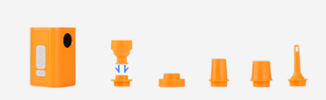 5WAYミニ電動エアポンプ(オプション)も用意。5種類のノズル付きなので、圧縮バッグのほか、浮き輪やエアトイ、アウトドア用エアマット、エアピローなど、さまざまなアイテムの圧縮が可能です。