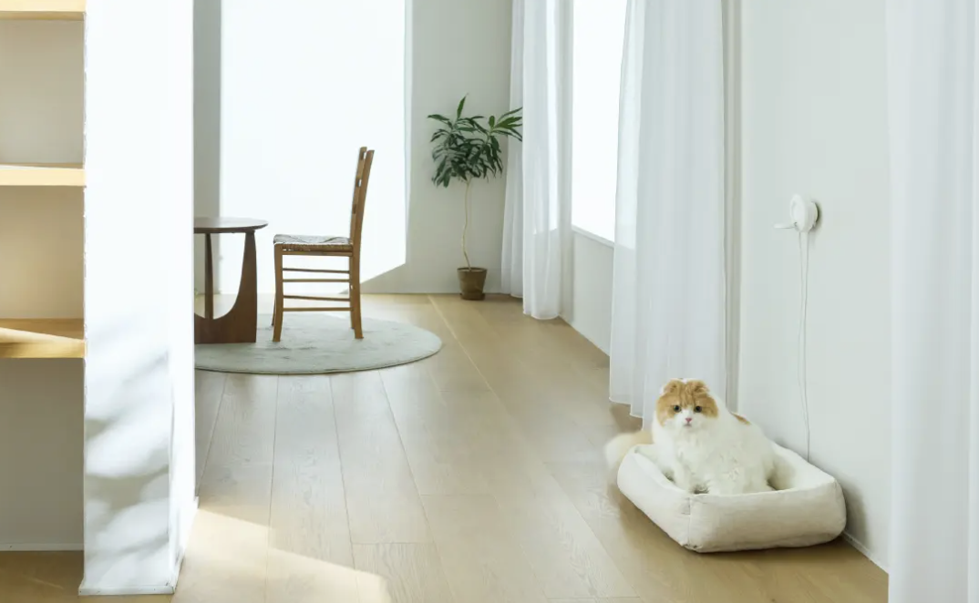壁や棚、ケージの上など、さまざまな場所にデバイスを設置可能。季節や気分でお気に入りの場所が変わったら、猫ちゃんに合わせて移設も簡単。シンプルなデザインなので、インテリアの邪魔をしないところもうれしいポイントです。