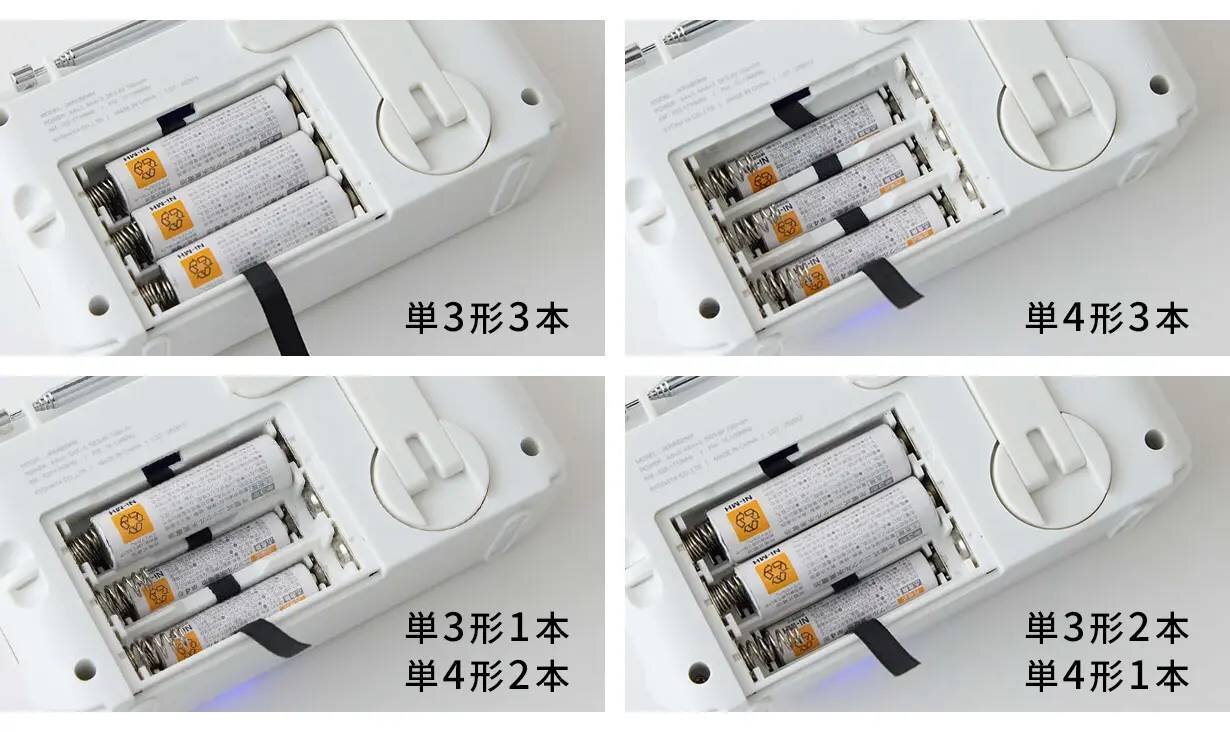 最大の特徴は使用する電池の種類を選ばないこと。一般的なラジオや電気機器はサイズも本数も固定ですが、本アイテムなら単3または単4電池なら混在しても問題なし。サイズが異なっても、合計3本あれば作動します。内部ユニットを直列配置し、どのスロットに入れても電気が流れる構造を採用。今ある電池で作動できるので、非常時も安心です。
