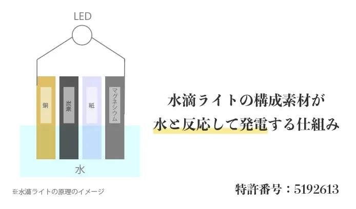 少量の水で点灯する新発想の防災ライト