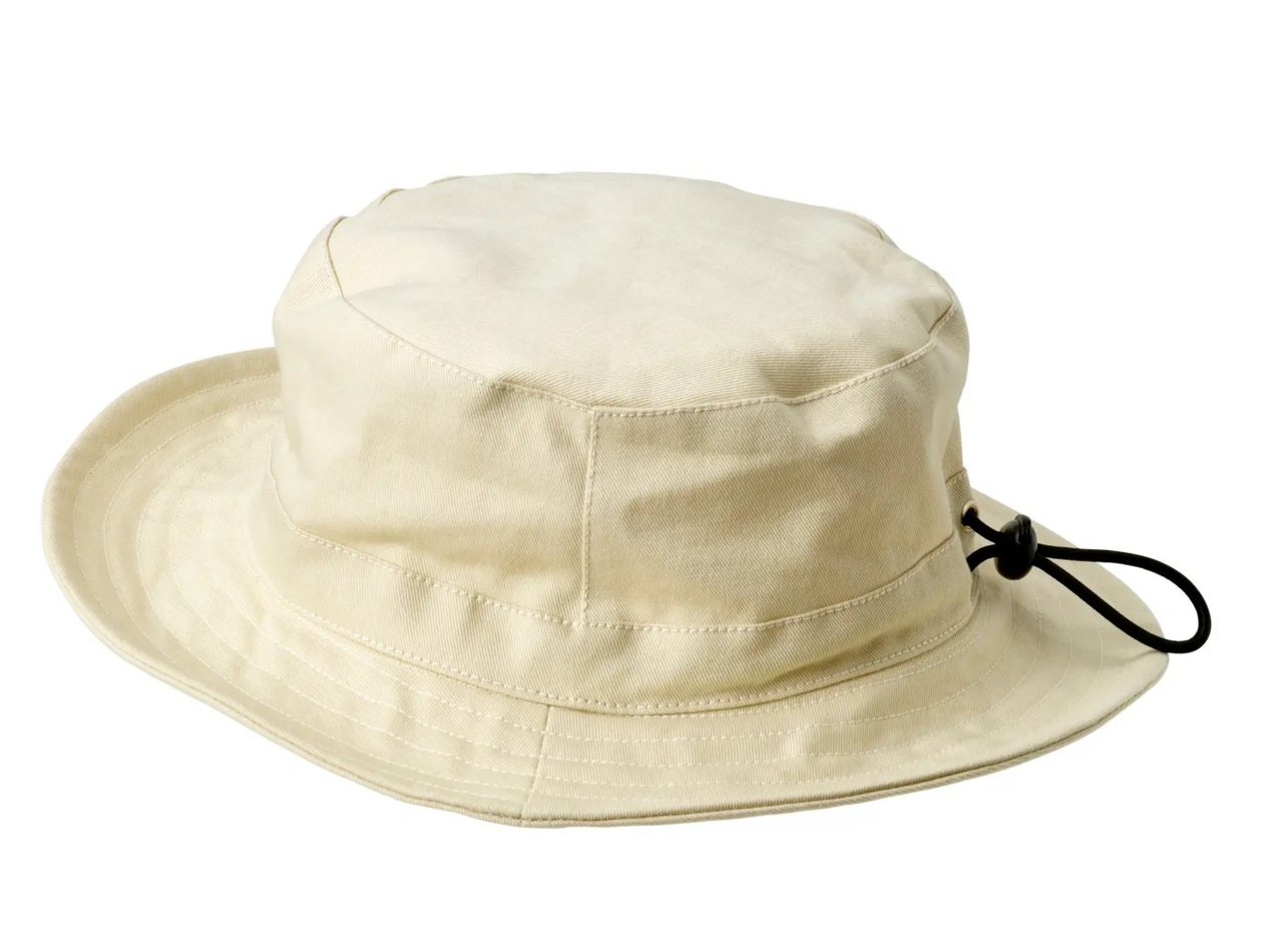 ソフトな肌触りで涼しい綿を使ったつばの広い帽子は、日差しが強くなるこれからの季節にぴったり。クラウンコードを絞ると頭のサイズに合わせてロックできるので、心地の良い帽子スタイルが楽しめます。